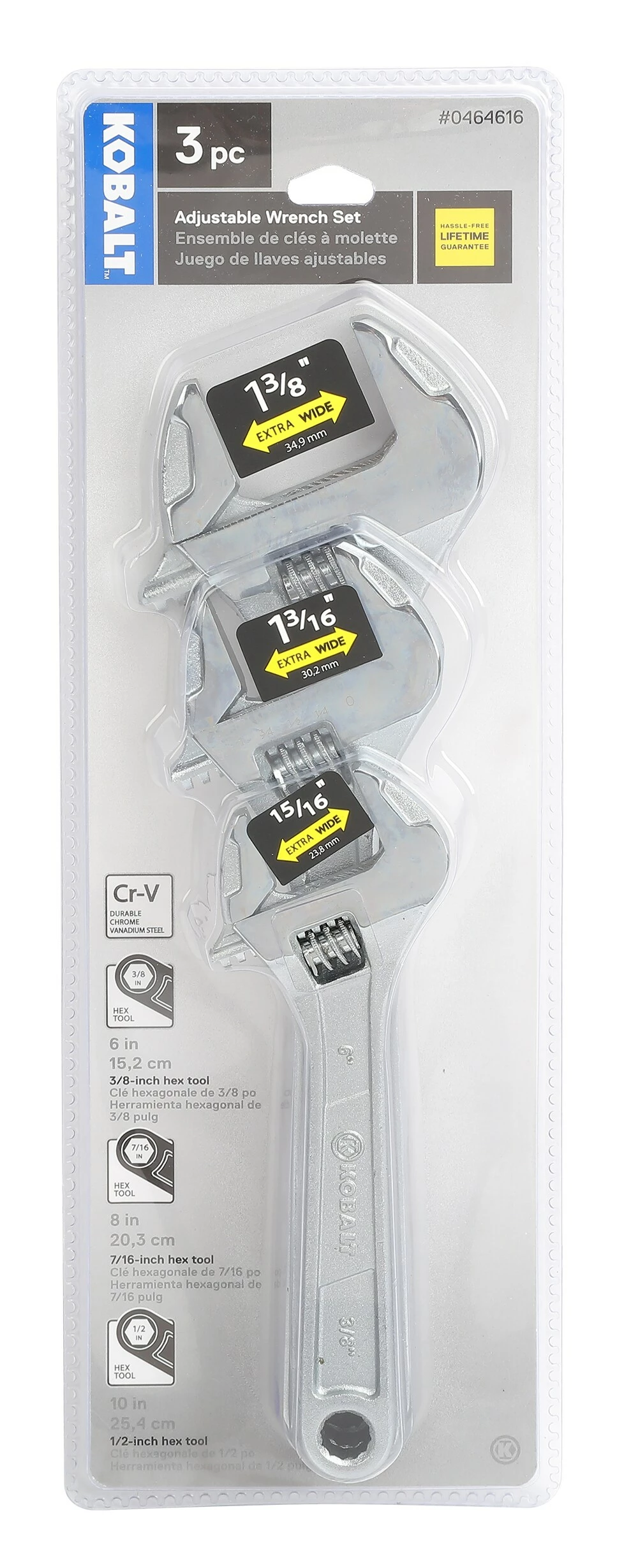 Kobalt Adjustable Wrenches 3-Piece Chrome Vanadium Steel Adjustable Wrench Set