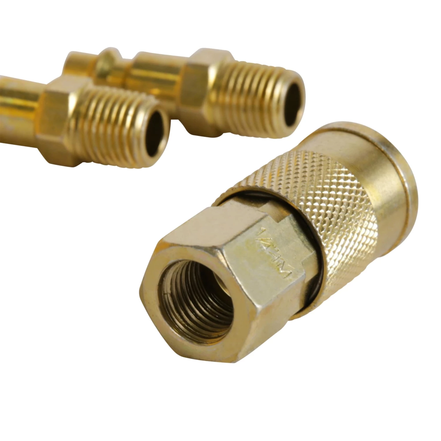 | Package Contents | Sports ball needle, blow gun, pencil tire gauge, thread seal tape, coupler, 1/4-in female plug, two 1/4-in male plugs, tire inflator nozzle, 1/4-in x 25-ft coil air hose, safety nozzle, and screw on chuck |