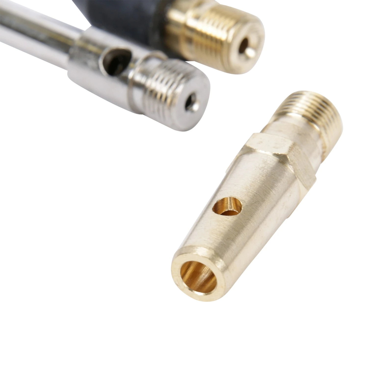 Change blow gun tips quickly and easily with secure quick connect system includes blow gun, industrial quick connect plug, and 3 tips.