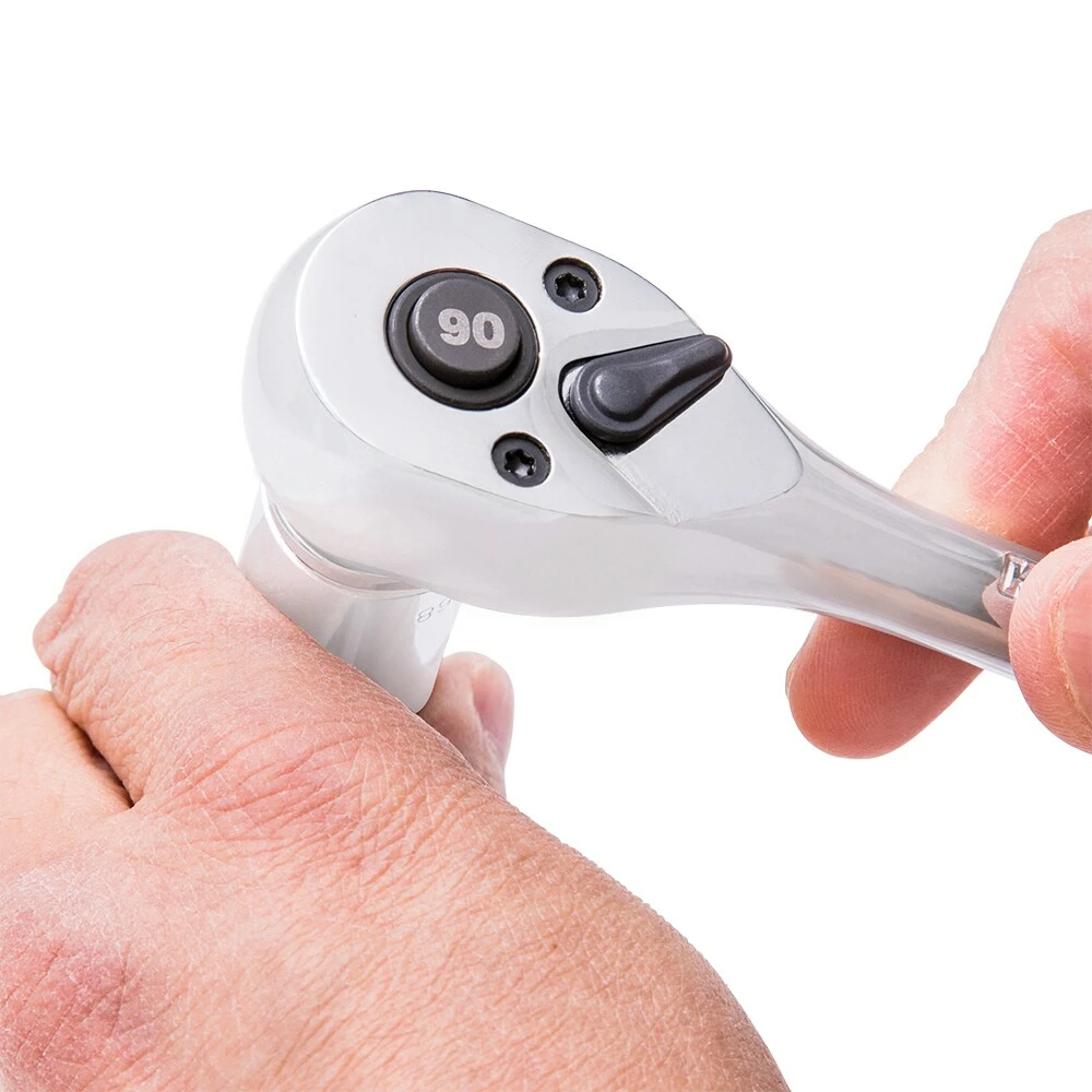 - 90-Tooth ratcheting design provides 4° of arc swing