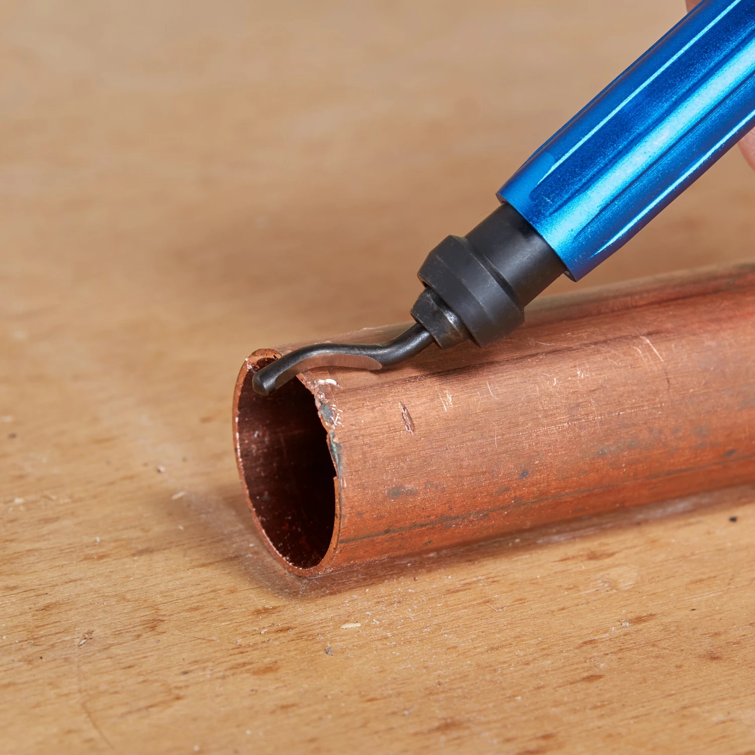 - Removes burrs from iron pipe, copper, brass and PVC