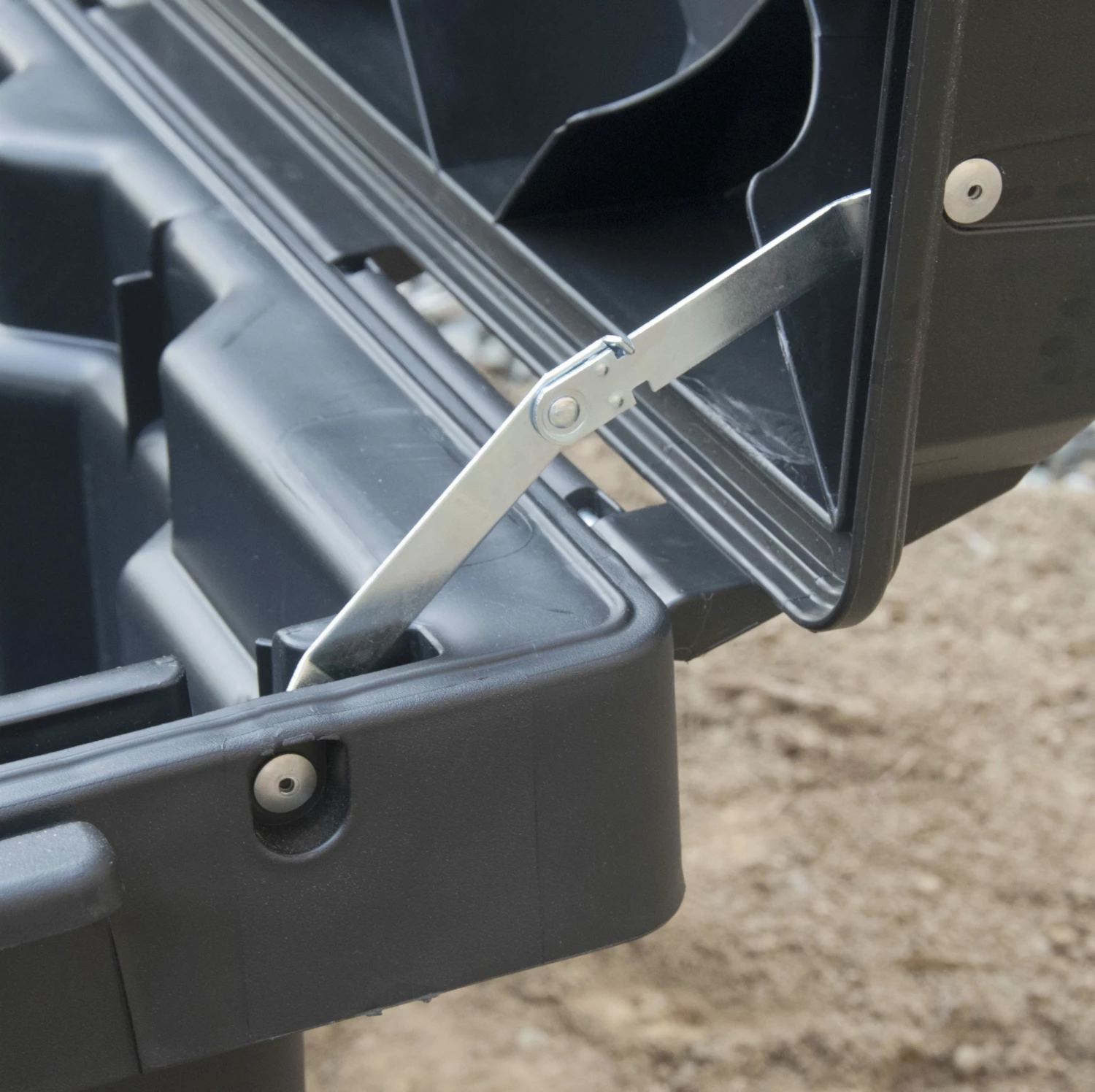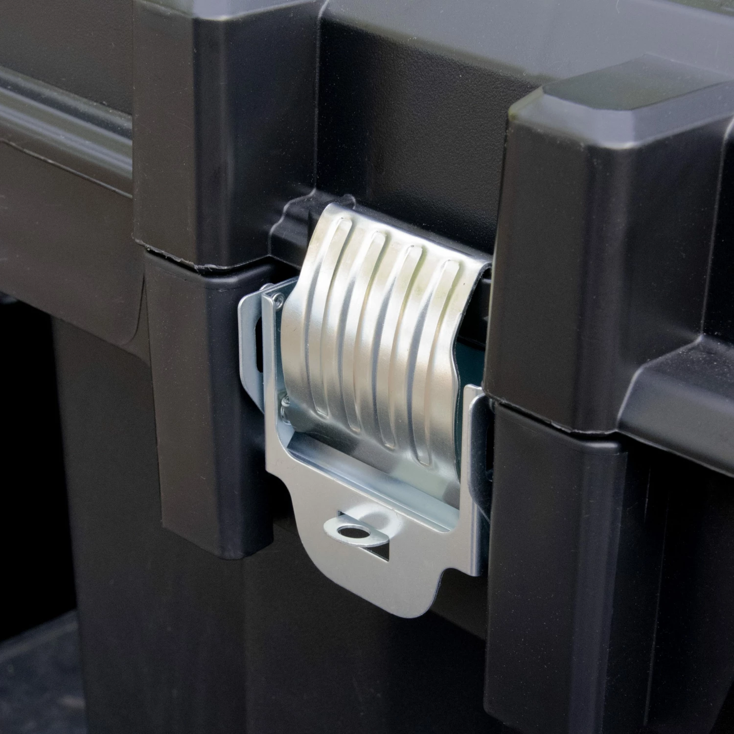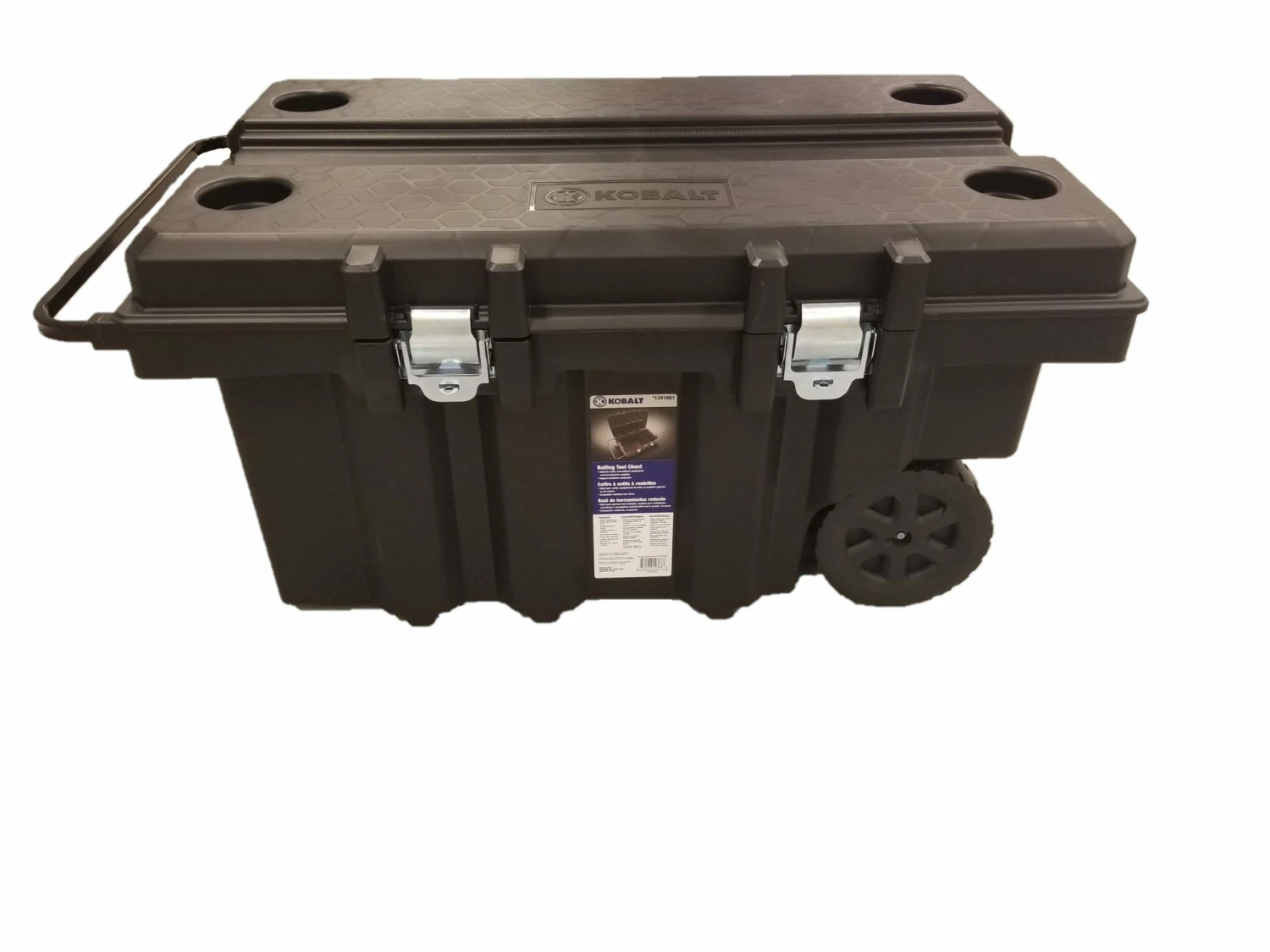 This 50 gallon rolling tool chest is made with spacious interior and rugged design for the toughest contractor. It comes with wheels for easy transport on and off the job site. It also has a place to use a pad-lock to lock up your valuable tools and equipment.