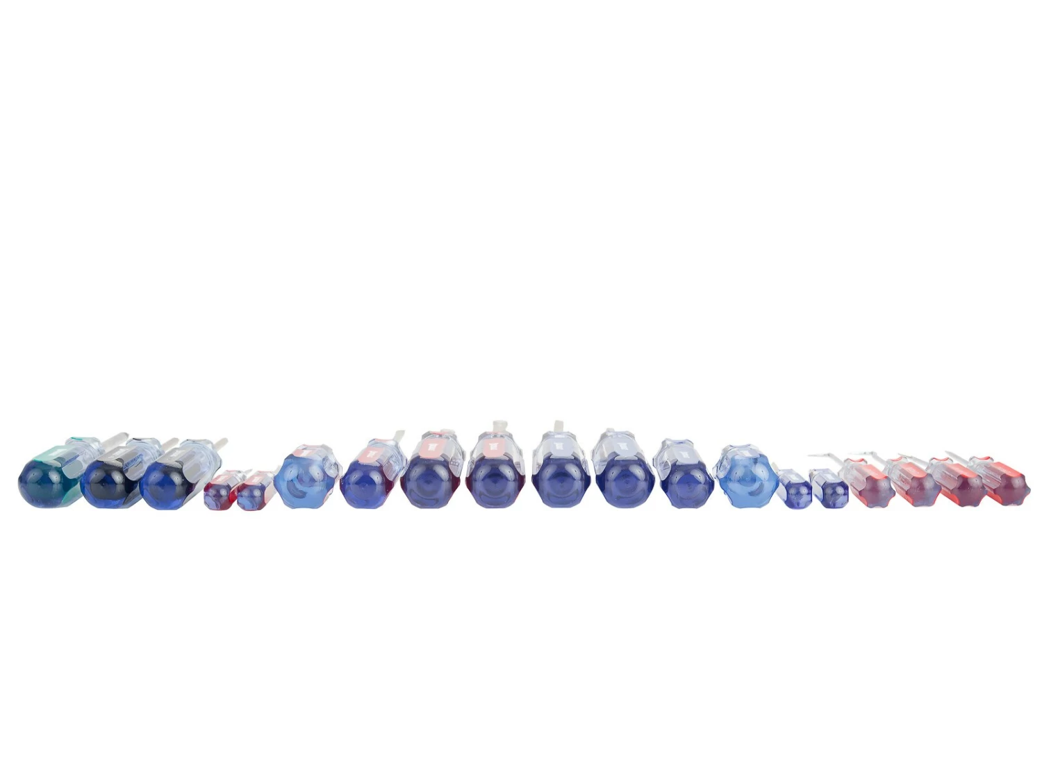 - 6 Phillips drive, 6 flat tips, 2 Torx drive, 1 square drive, 1 off-set, 3 hooks, and 1 pick