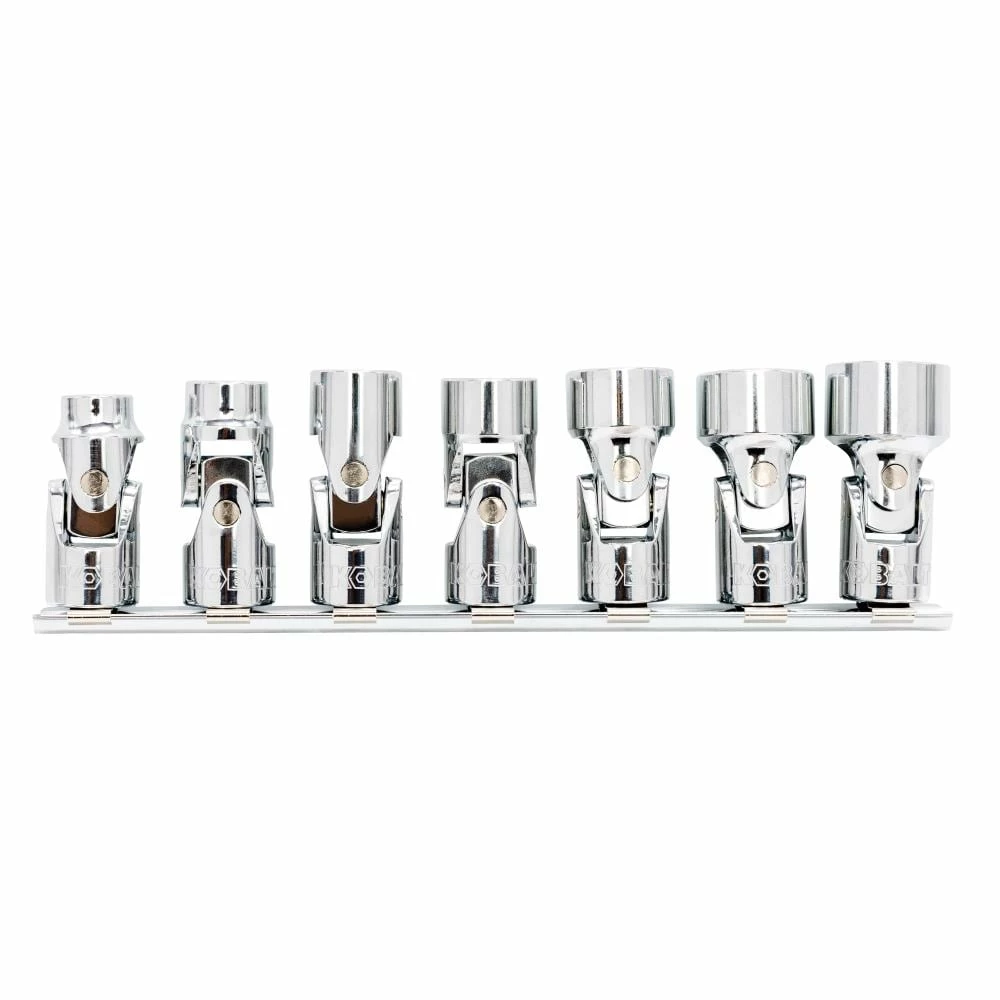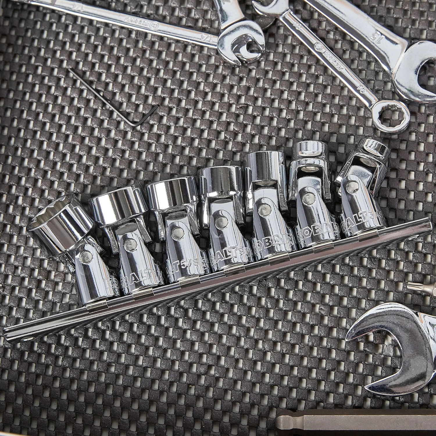 - 3/8-Inch drive flex socket set contains SAE sizes: 3/8, 7/16, 1/2, 9/16, 5/8, 11/16 and 3/4-inch