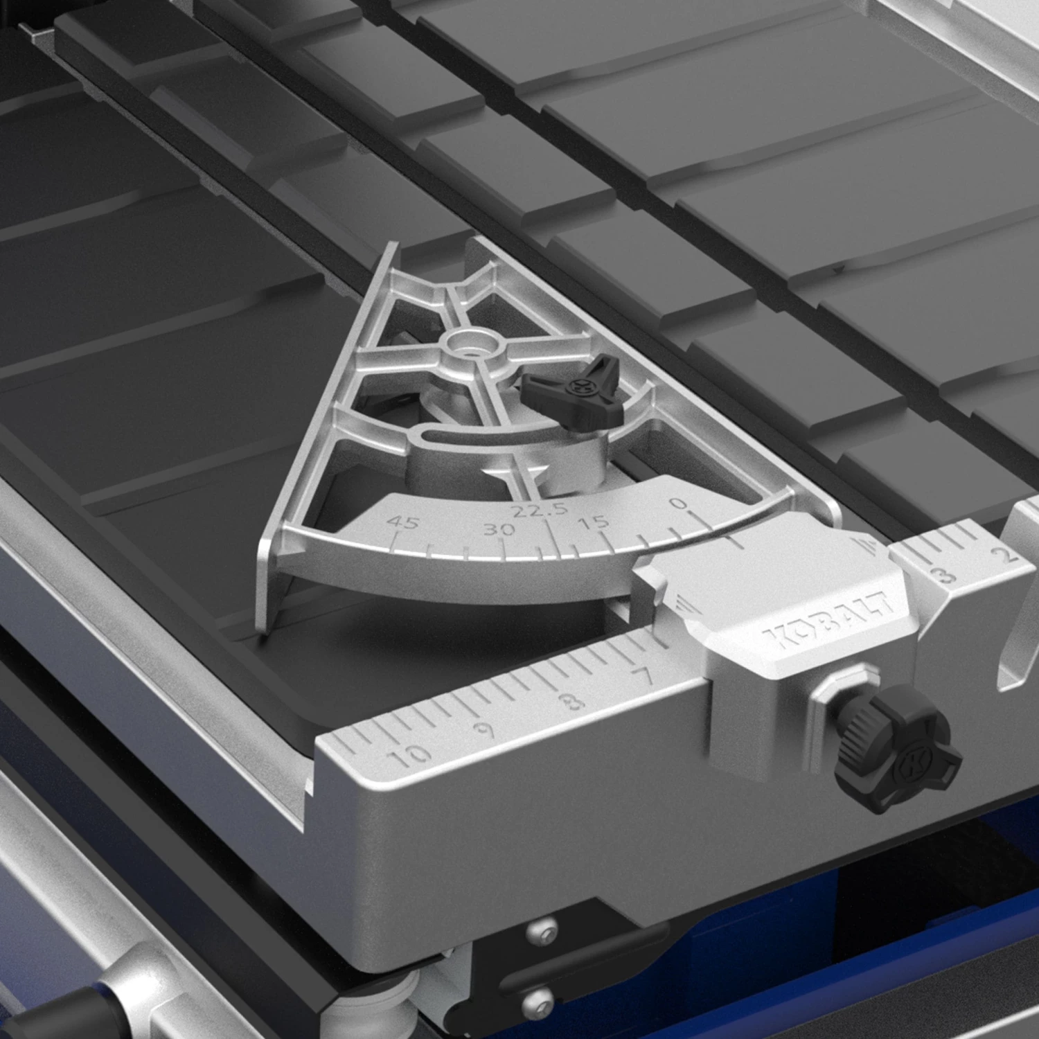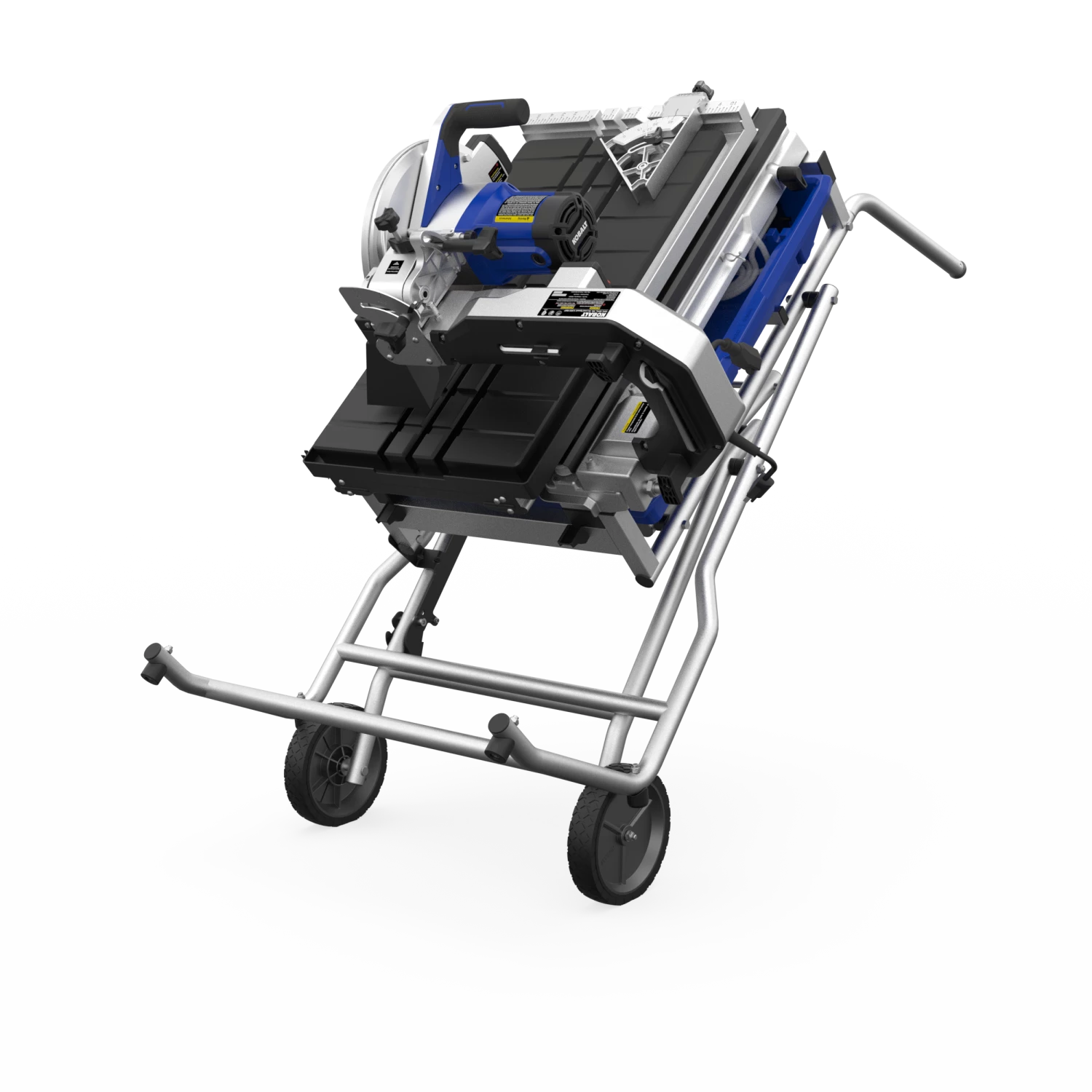 The improved Kobalt 10inch tile saw has a max rip capacity up to 36 inches, a 24″ diagonal cut capacity, with a 3-3/4 in max depth of cut. This saw is designed to rip through natural stone, pavers and porcelain. The heavy duty integrated stand with 8″ wheels makes it easy to transport on and off the job site. The splash guard helps keep the work area clean by limiting the amount of over spray.